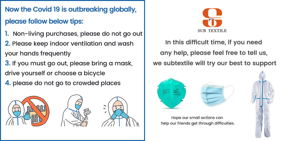 Subtextile as your trusted partner, we decide to use our resources to provide these protective gears for you, hope it will carry you through the tough times.