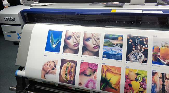 Epson newest large format B9080 with TFP print head, with dual PrecisionCoreTM TFP Micro Piezo Spray Head, 2.0" Wide which up to 31 square meters/hour printing speed, more details click here. Relevant ink you can available in Subtextile, link here.