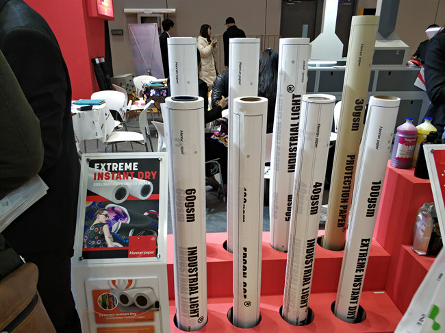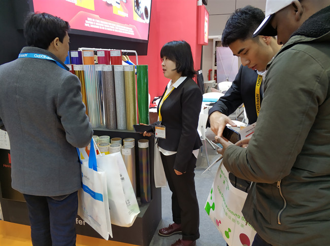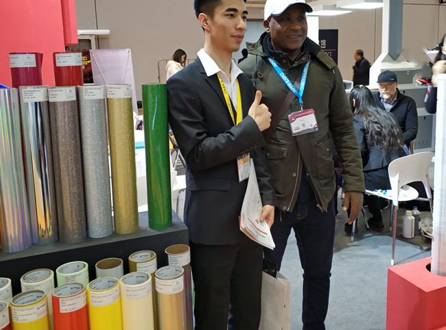 Our 90gsm, 100gsm fast dry sublimation paper very popular in Expo, and so many agents interested our heat transfer vinyl such as PU, PVC, Glitter,