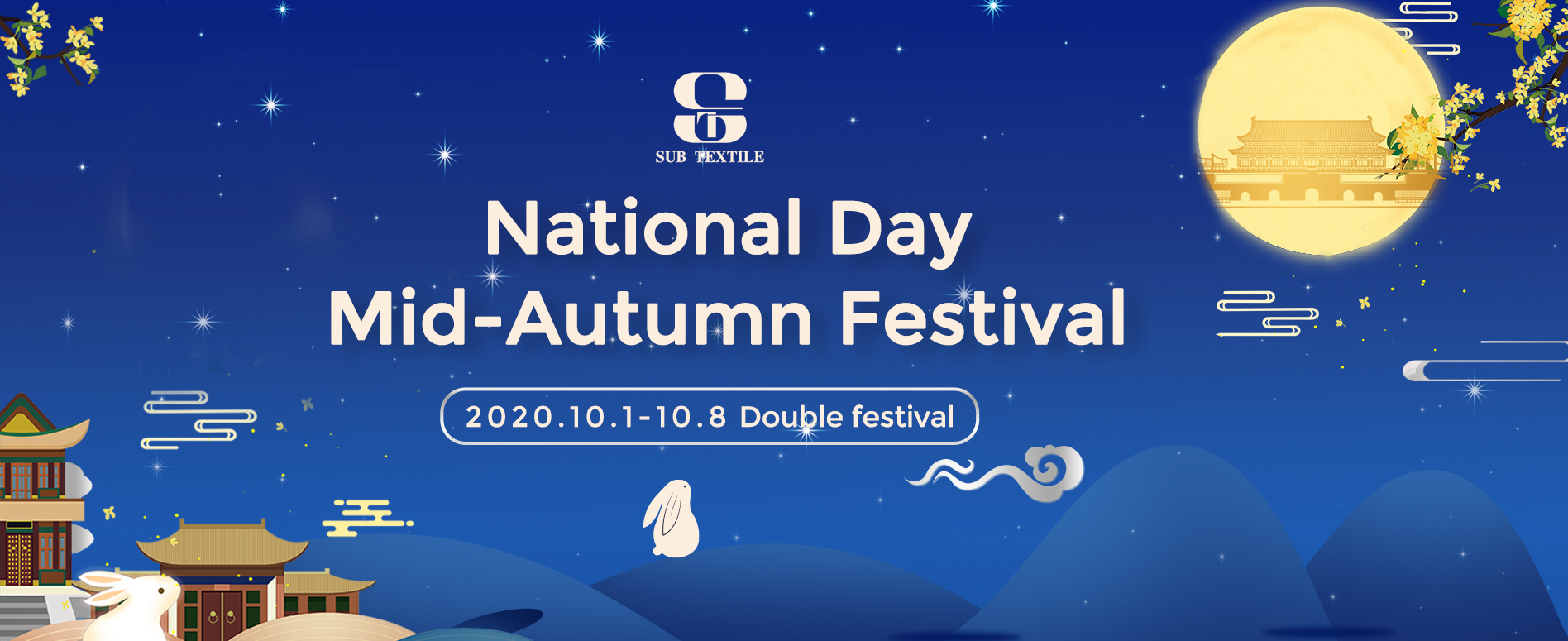 To celebrate the National Day and Mid-Autumn Festival, Subtextile will be on holiday from Oct.1st to Oct.5th and we will get back to work on Oct 6th.