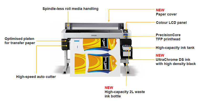 Epson PrecisionCore TFP printheads ensure high throughput and long production life, while variable sized ink droplets enhance high-quality results. Working in tandem with the printheads, Epson's UltraChrome DS ink-set helps achieve the best possible results.