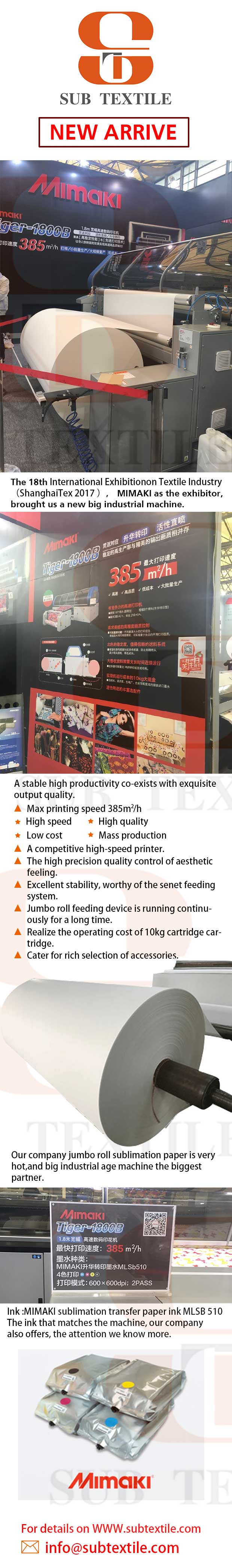 18th Shanghaitex, Mimaki promote new industrial printing machine, which made in Italy, holding 5000m length jumbo roll, make fly speed printing, 385sqm/hour.